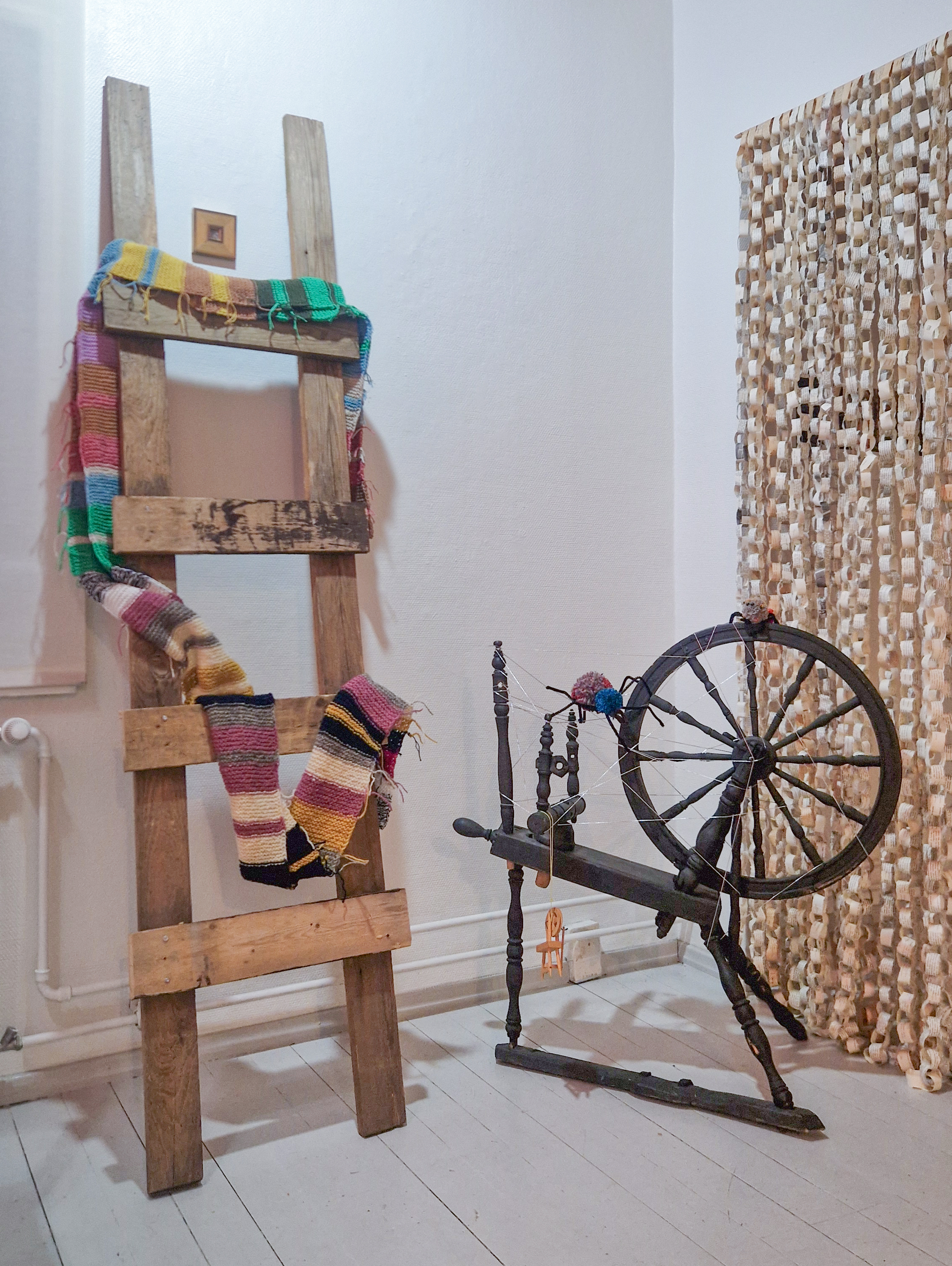 Kuvataiteilija ja runoilija Merja Turpeinen on tehnyt näyttelyyn paperiveistoksia ja kollaasin. Hän pohtii töissään aikaa, tarinallisuutta ja ylisukupolvisia kokemuksia, joille ei aina löydy sanoja. Lisätietoa Merjasta löytyy täältä. Vieraile myös hänen sivullaan: www.annetaanruno.fi