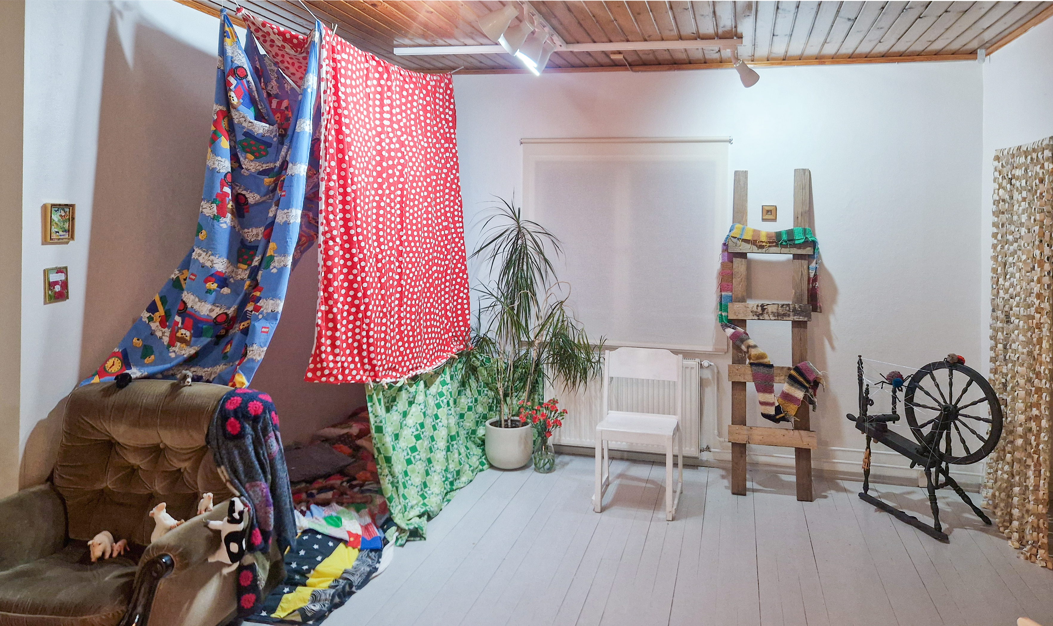 Tervetuloa vierailulle päistikkaiseen mummolaan taiteilijatalo Gjutarsiin 27.11-14.12.25! Päistikkainen mummola on Heidi Wikströmin, Merja Turpeisen, Tuula Coxin ja Siiri Koposen yhteisnäyttely. Neljän naistaiteilijan ja samalla kahden äiti-tytärparin näyttely lähestyy tunteilla ladattua käsitettä, mummolaa, kunkin taiteilijan omien kokemusten kautta. Näyttelytilaan sisustetussa mummolassa on esillä valokuvia, taidekirjoja, videoita, kollaaseja, veistoksia, sekä tietenkin peittomaja ja lamppumetsä!