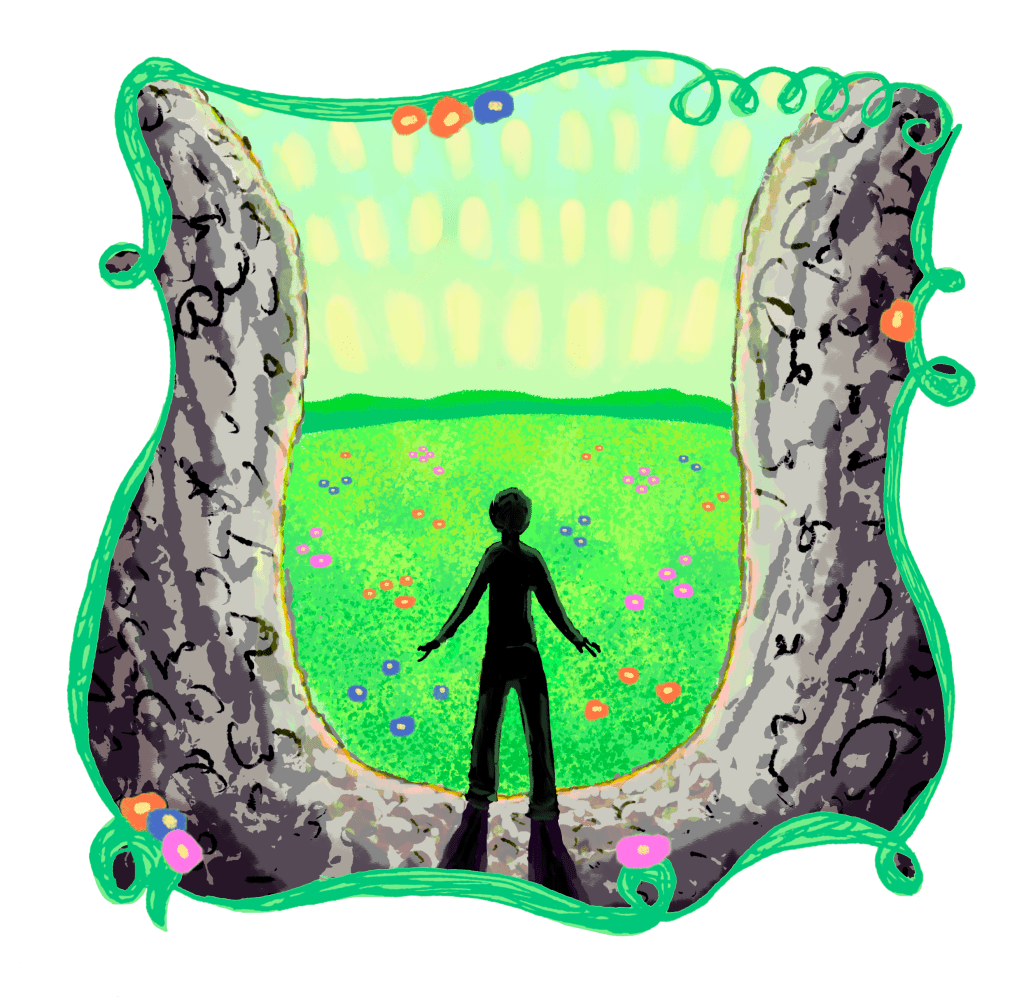 For my piece, Calormen works as a metaphor for the dark and difficult times of one ´s life, and Narnia as a metaphor for better times and mental well-being. In the book, Archenland is the country in between these two countries, and hence works as an archway between the two states in this piece.