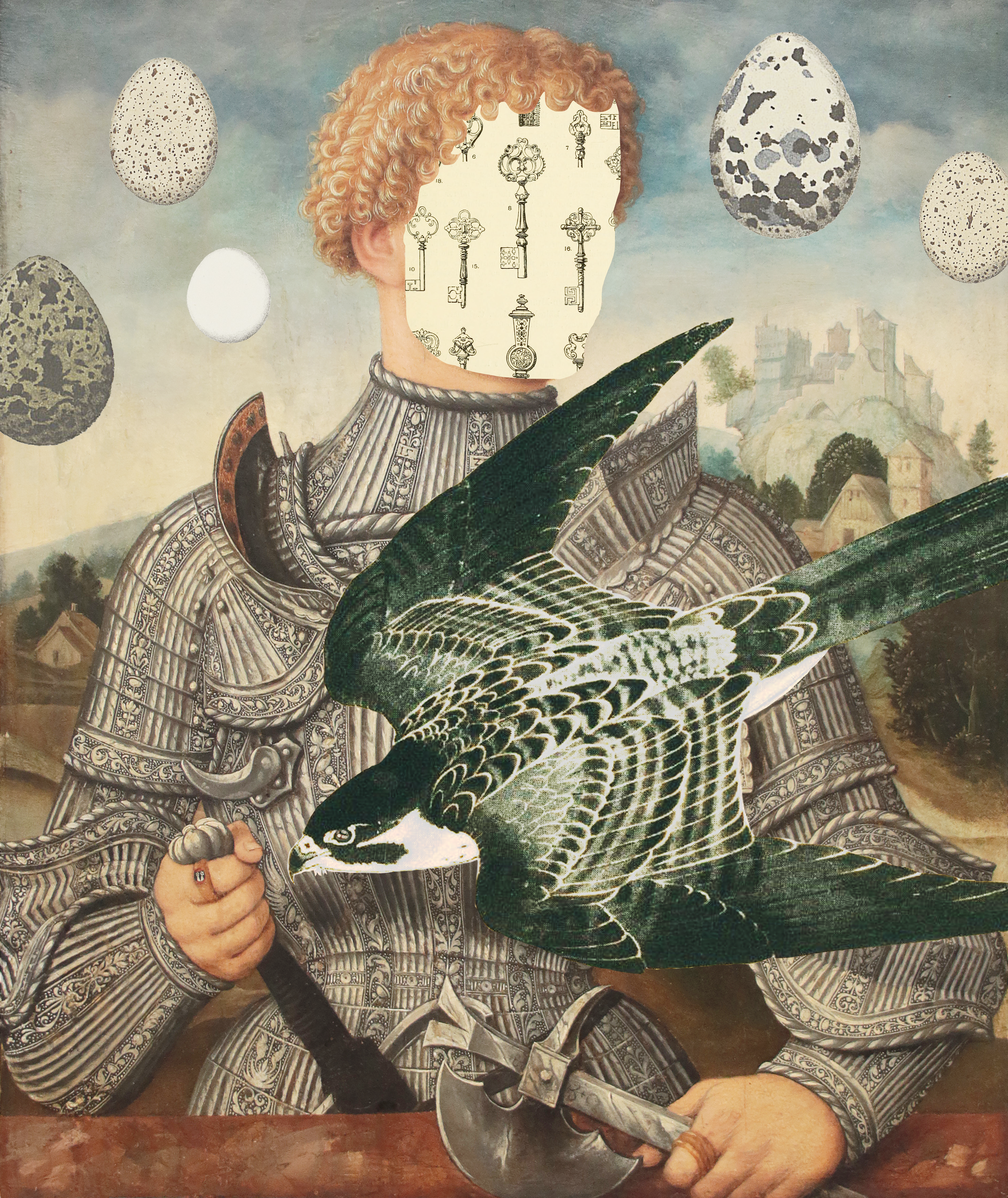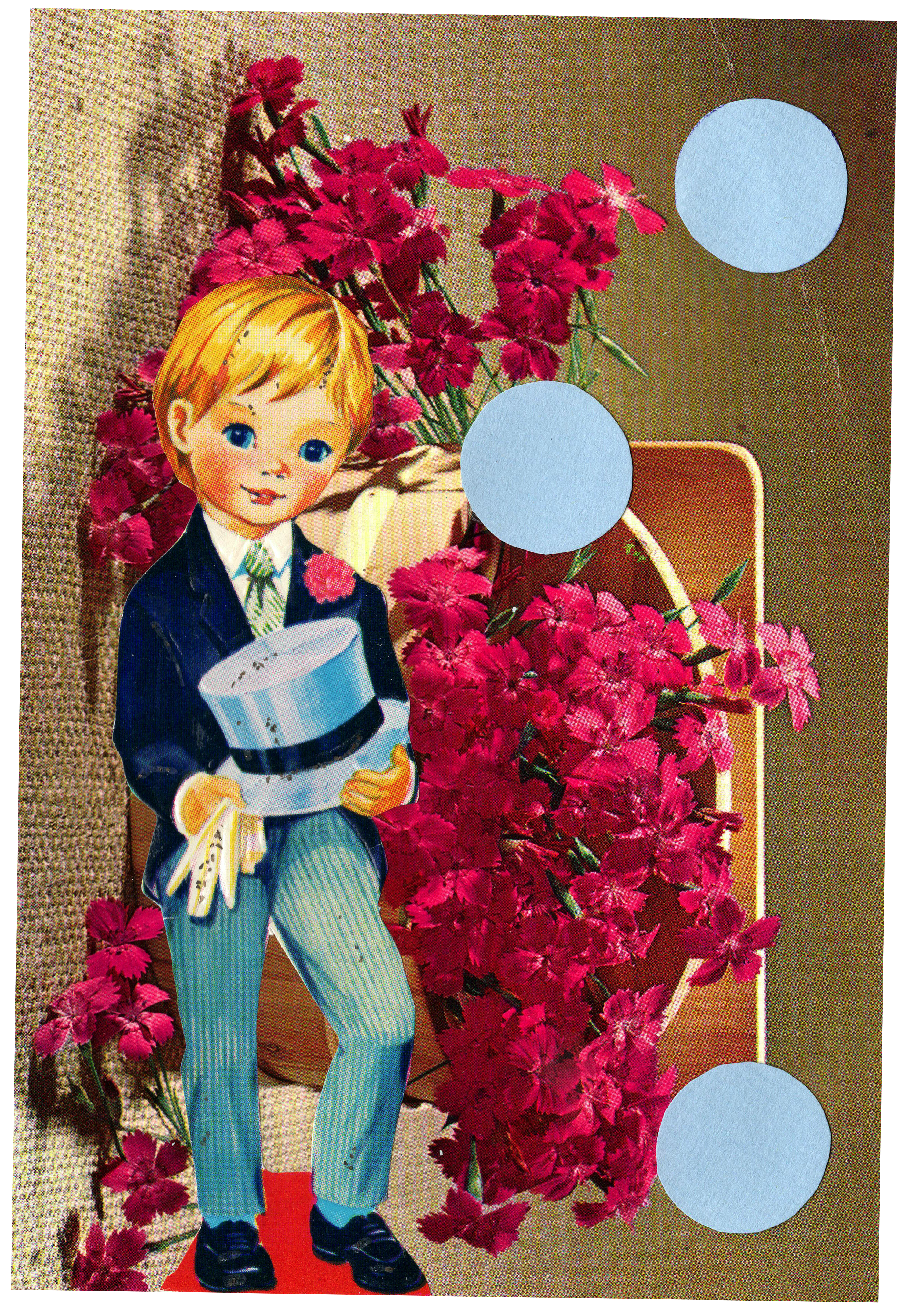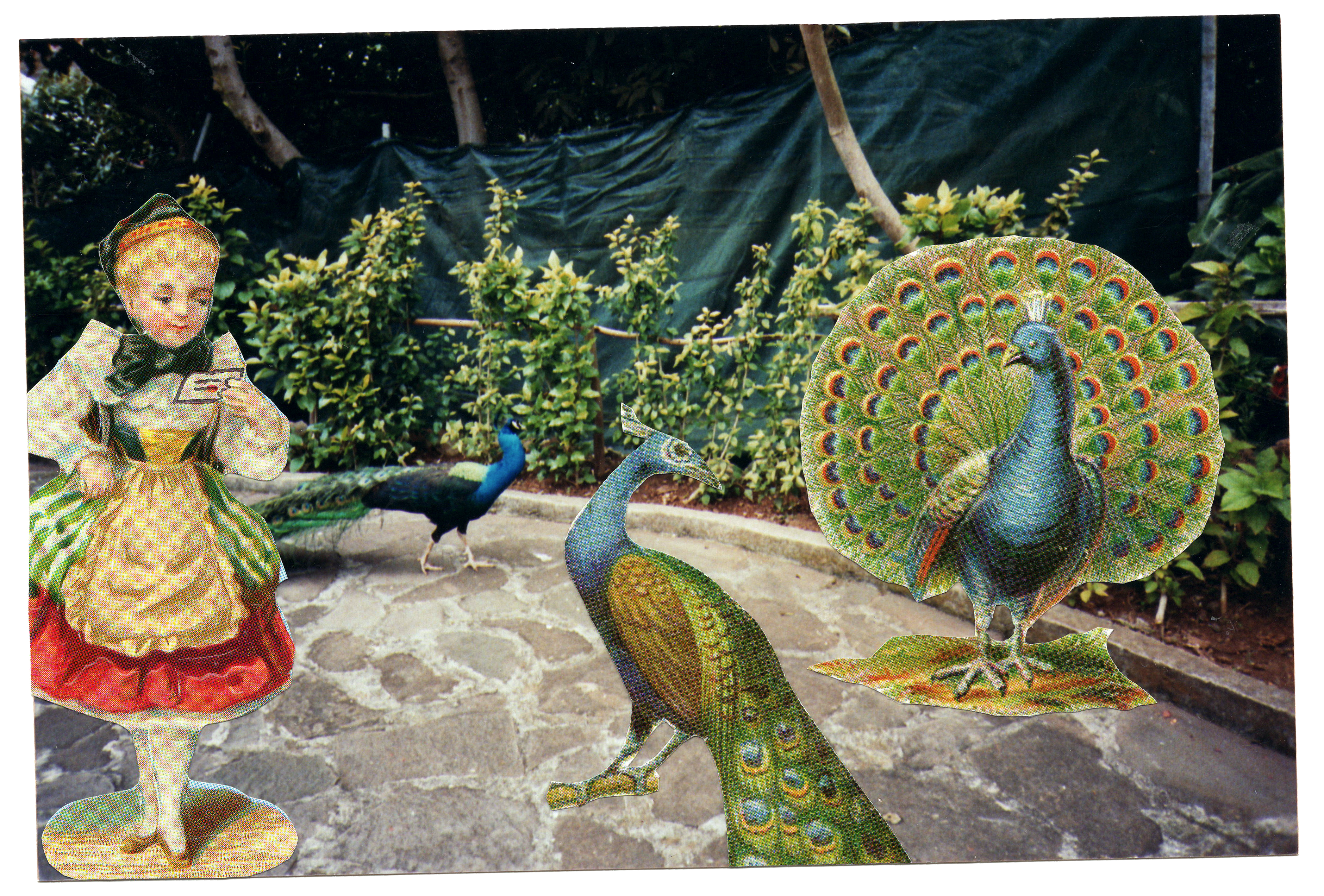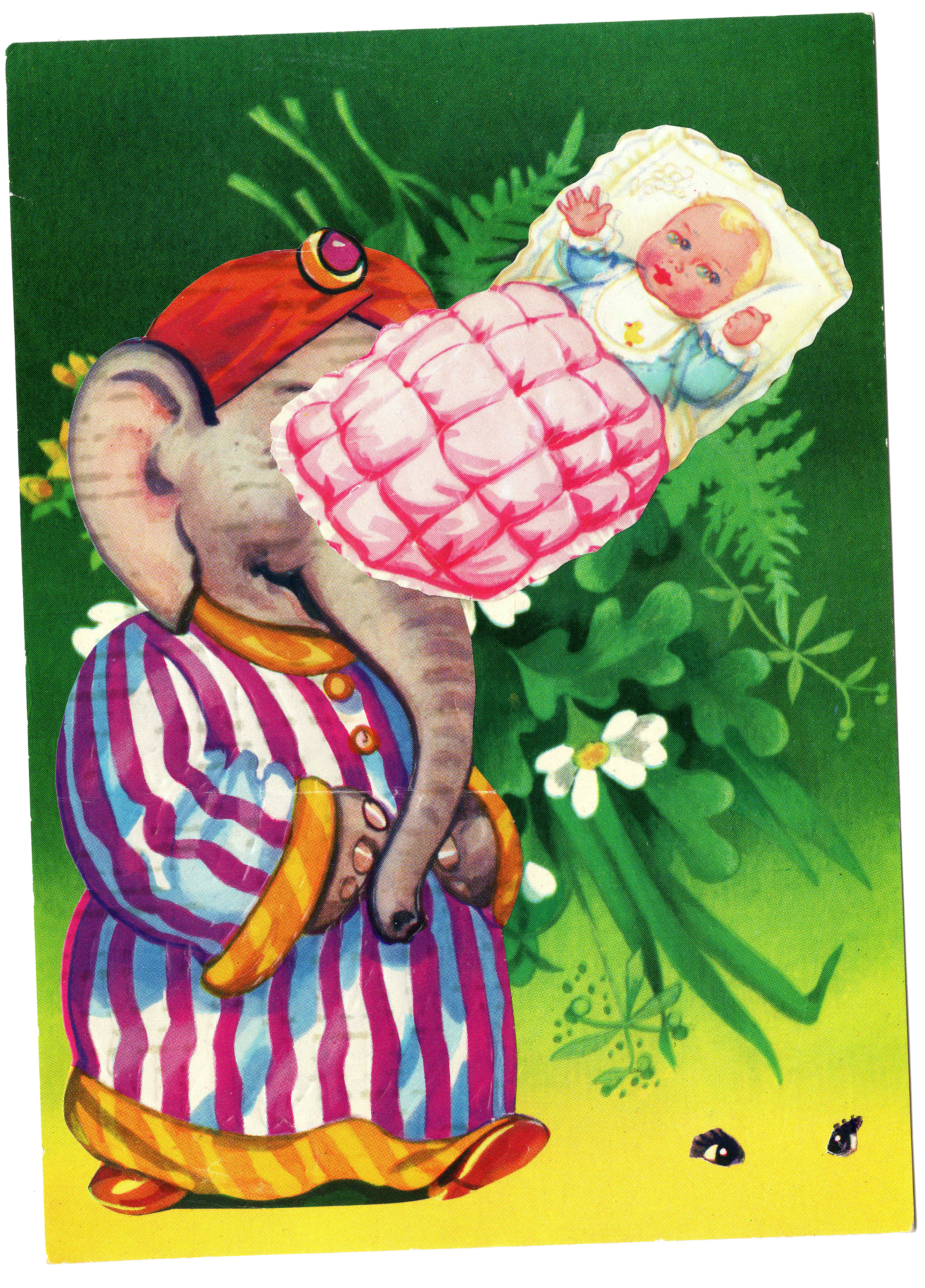 My collage work is highly intuitive. I collect vintage postcards, and whenever I stumble upon one that I feel like is lacking something, I put it in my future collage project stash. I like to think of each finished piece as a kind of miniature story: sometimes, they reflect my memories or dreams, and sometimes, they are jokes with references to classical literature, art history, and meme culture.