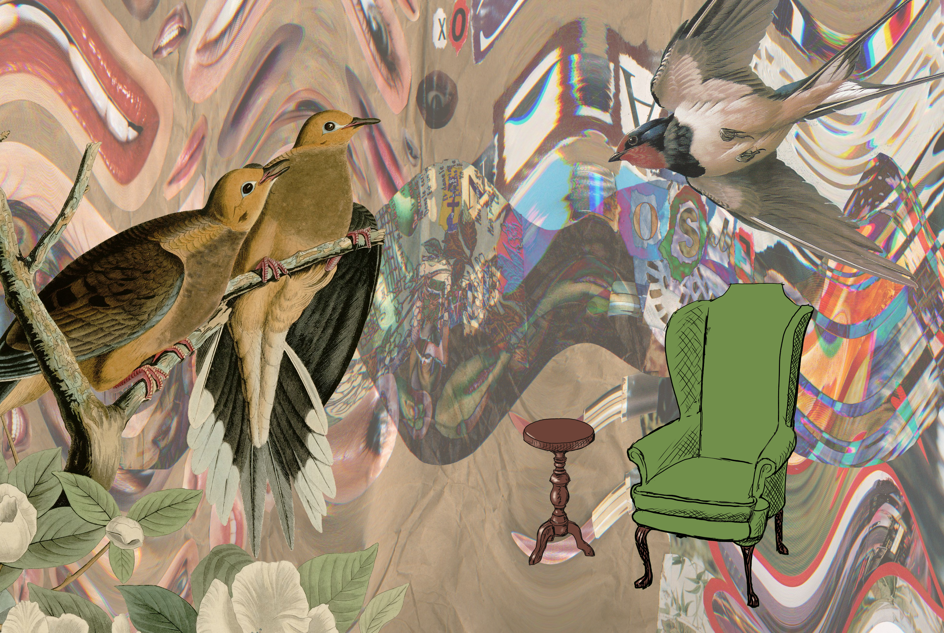For my digital collage, I like to mix my own photography, thrifted physical media, and public domain archives.